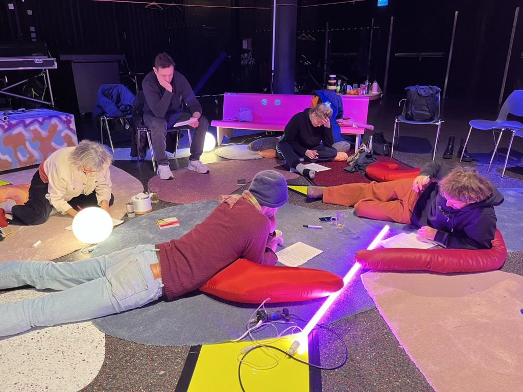 Aus dieser gemeinsamen Ausgangslage entwickelt sich eine Auseinandersetzung mit Verantwortung, sozialer Arbeit und Empowerment. Erst allmählich entsteht ein klassischer Bühnenraum. Im Zentrum steht Édouard Louis’ «Das Ende von Eddy»; nicht als zu erzählende Geschichte, sondern als geteiltes Material. Die Seiten des Buchs werden geteilt, jede:r liest für sich, die Sprache stockt, verletzt oder verstummt. Aus Stille und Reflexion entstehen freie Assoziationen. Persönliche Erfahrungen, Coming-out, politische Fragen und Handlungsimpulse verschränken sich. Publikum und Performer:innen treten in Co-Autorenschaft, und das Stück endet offen, als Erfahrung dass Sprache manchmal fehlt – und dass gerade darin ein gemeinsamer Raum entstehen kann.