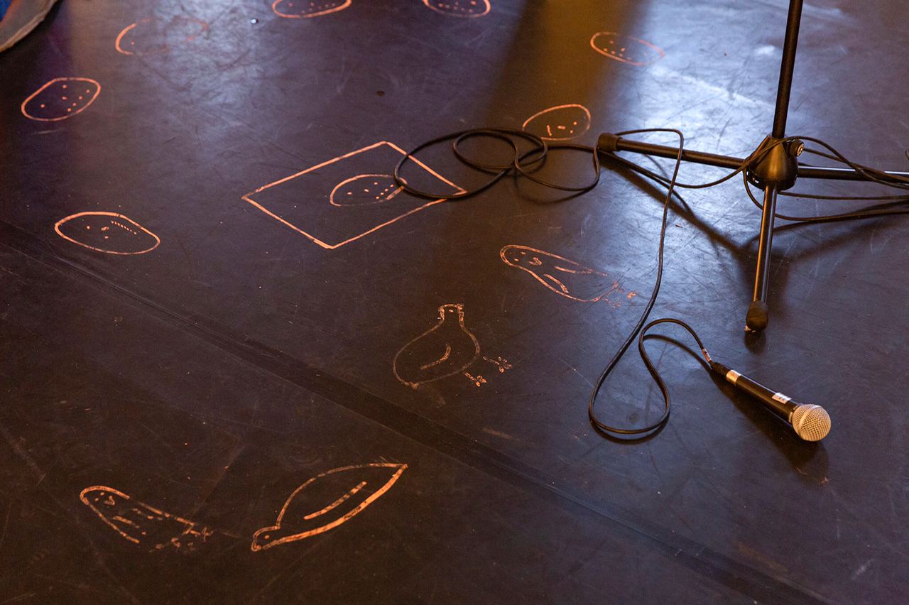 Die Struktur der Vorstellungen war immer die gleiche: Ein:e Ko-Autor:in eröffnete und schloss die Aufführung, alle anderen anwesenden Ko-Autor:innen agierten dann innerhalb des Rahmens während 60 Minuten.
