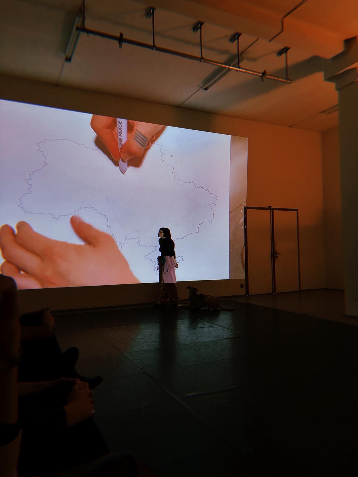 “During Ukraine” is a work-in-progress performance developed during a three-month residency at Rote Fabrik in Zurich. The piece emerges from a close artistic collaboration between Yevheniia Vidishcheva, a documentary theatre director and performing artist from Kyiv, and Ketty Ghnassia, a Zurich dramaturg and performance artist.